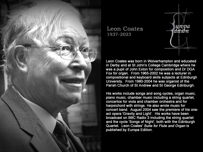 Over the past few years we have been saddened beyond words to learn of the passing of a number of cherished members of the Europa Edition family. John McLeod, Michael Garrett and Leon Coates were not merely composers whose work we published, they were dearly beloved friends and colleagues. Though they no longer walk beside us on this earth, their wonderful music lives on. We are proud to play a very small part in keeping their musical legacy alive.